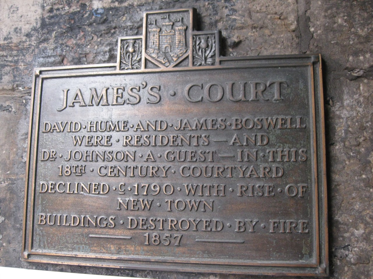 Plaque in close leading to James’s Court, where David Hume lived for a time