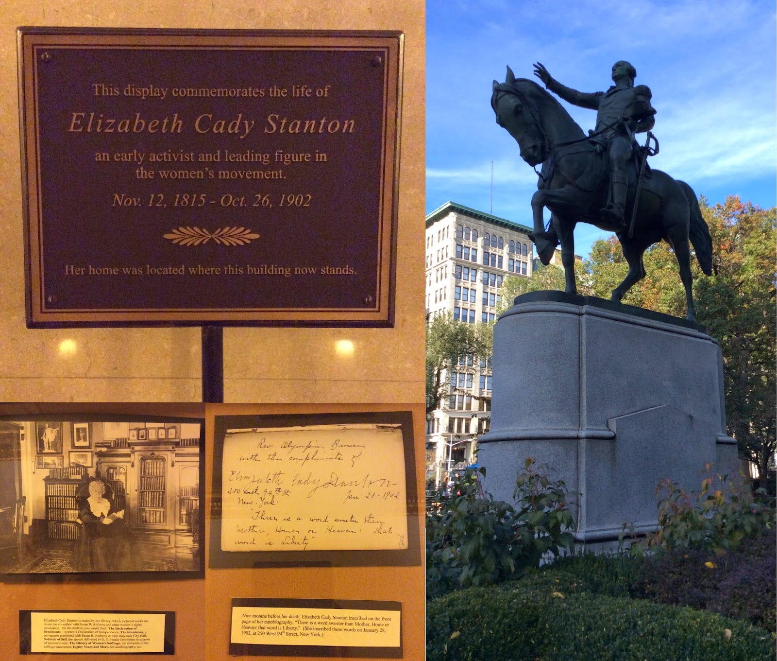 In my last travel blog series, following in the footsteps of great thinkers who changed the world, I explored New York City. I found statue after statue, monument after monument, portrait after portrait, of important men in American history: there were Lincolns, Jeffersons, Clintons, and Hamiltons galore, and speaking of horses, a multitude of Washingtons, often astride one. Yet search as I might, in this city that birthed and nurtured so many of the greatest American intellectual and reform movements, I was hard pressed to find such tributes to their female counterparts. Wait! there’s one: Eleanor Roosevelt, great humanitarian… and oh yes, wife and cousin to two American presidents.