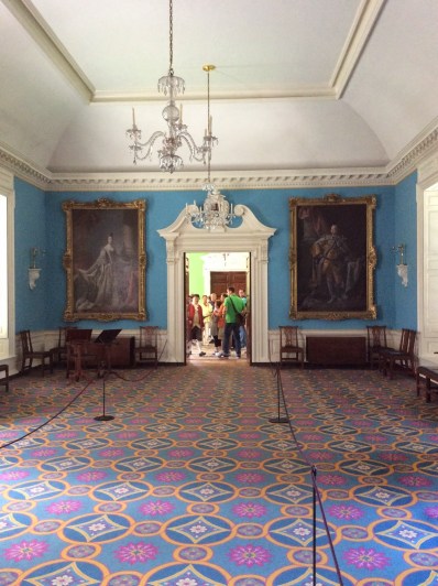 We pass thorough a pretty, small blue parlor to the next room that really represents something that Jefferson’s all about: the book room. You may be surprised that Jefferson had such a large library as this in his later years considering he’d sold all his books to Congress in 1815. But as he wrote to John Adams, he couldn’t live without books, so he promptly resumed accumulating more debt by building a new library.