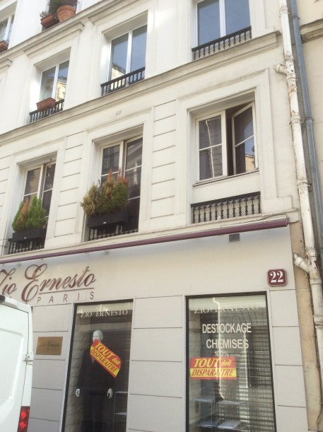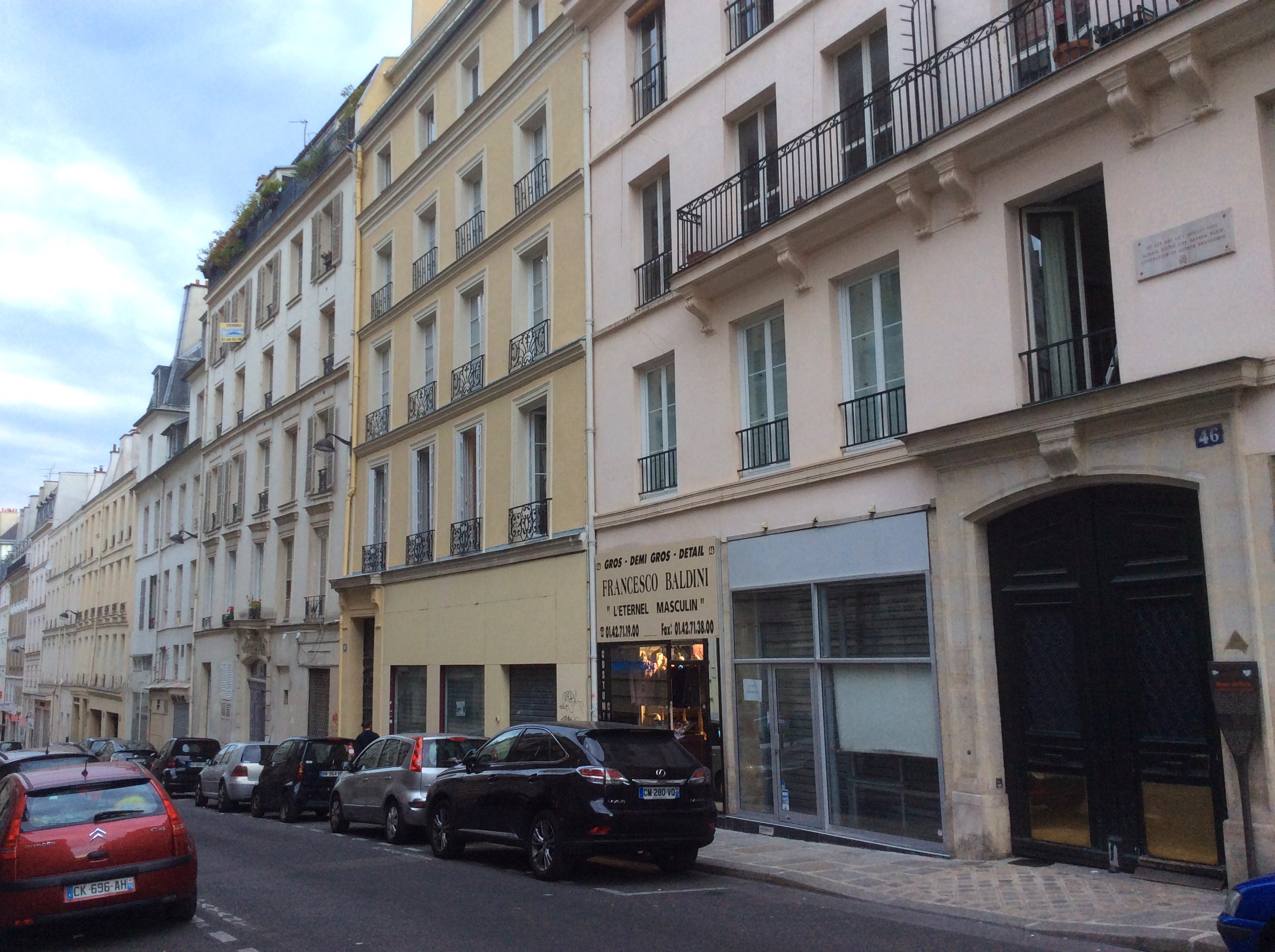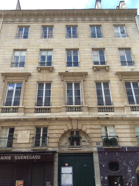 Though I find the Sand house easily, try as I might, I see no indication of the original Filliataz house andits exact location, just as I couldn’t in my books or online, so I photograph the part of the street and the houses near enough to the Sand house to be number 22. As you can see, it’s really a great street, just as the man said, and it does seem more likely that Wollstonecraft lived in a house near this end of the street, given the story of seeing the King passing by, since it’s higher up and the street veers closer to Boulevard Saint-Martin.