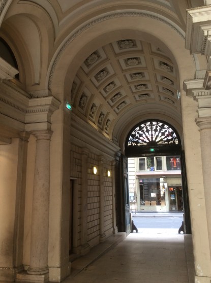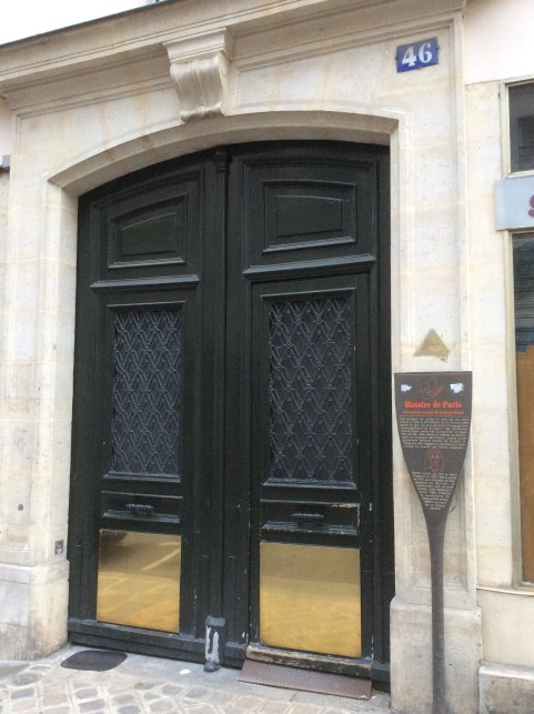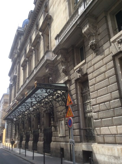 Jefferson was an avid patron of the arts, and attended the theatre often while living in Paris to see plays and musical performances. He often went to the Theatre des Italiens, very near his Taitbout place on Boulevard des Italiens. There is no theatre today with that name, but I find Opera Comique in just about the right place. Could this be the same building? The building appears to be of the right vintage. I look into it, and sure enough, it is! It’s in the process of getting a facelift and a good cleaning, but the side entrance is in good repair and attractive with its lovely cast iron lacy canopy.