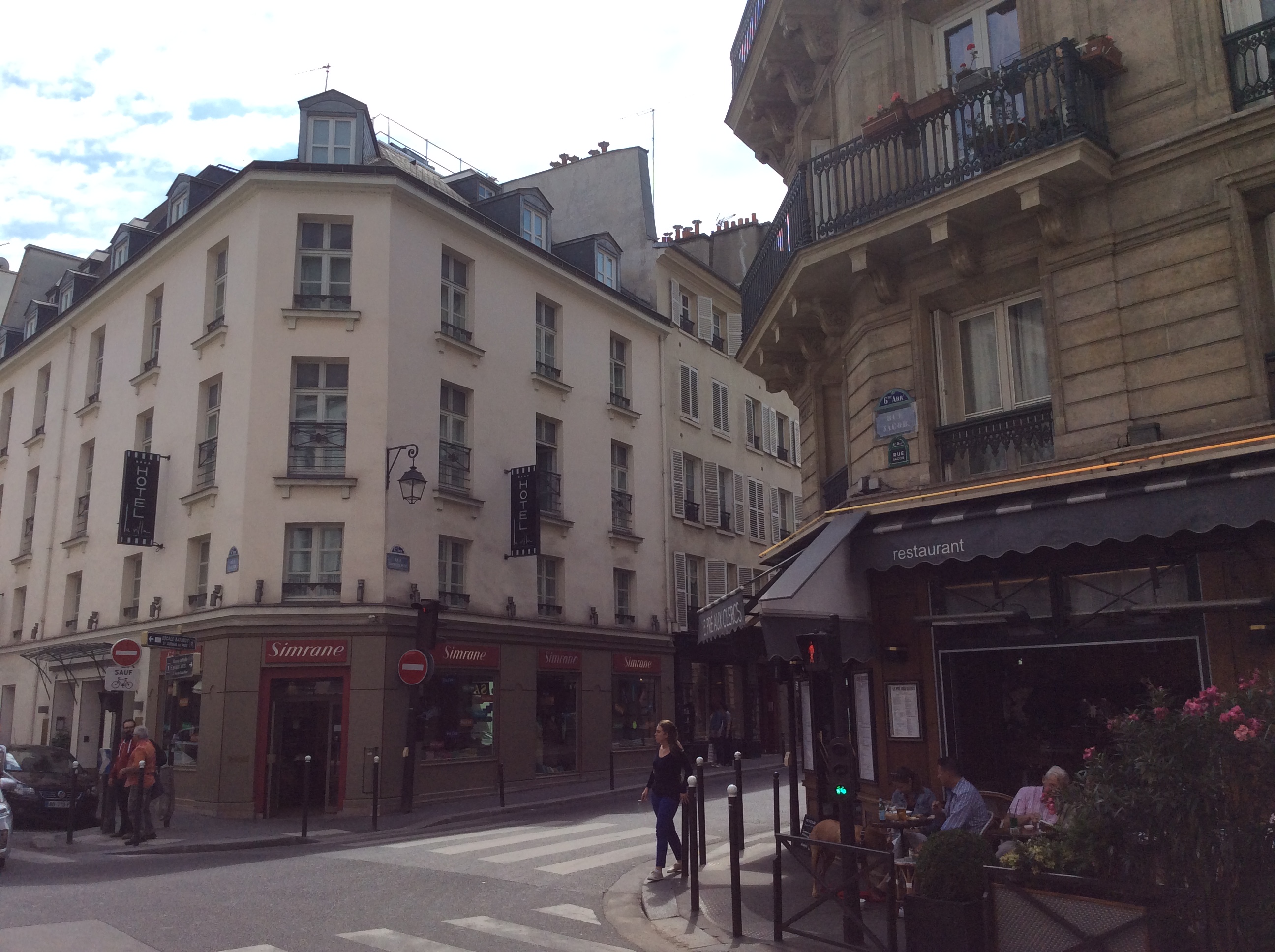 At this point, I’m regretting the pace at which I toured the city today. My knees ache terribly, especially the right one, and I’m disappointed in myself. I’m an avid hiker and consider myself an able and enthusiastic walker, but today’s tour did me in. Then I remember: I had just been sitting for hours sleeping with my legs all twisted up in the cramped space in front of my airplane seat, so my knees had likely been strained. Next time, I’ll pace myself appropriately. In the meantime, I buy a tall can of Hoegaarden (a favorite ‘easy beer’) and some snacks, and sit by the Seine writing notes under a shade tree; it’s a lovely way to rest. I recover a bit, then stroll some more through the Latin Quarter. It’s touristy to the nth degree. I wish I could have seen it decades ago when it was still bohemian and more interesting, but I do appreciate seeing so many people out on holiday having a good time.