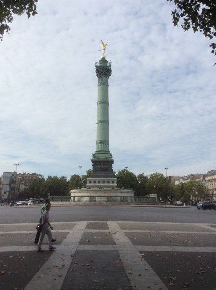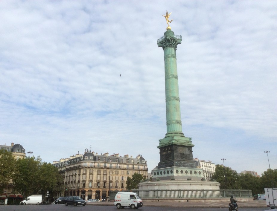 I’m heading for the Place de la Bastille, the site where the notorious prison once stood, which by the late 1700’s had become a symbol of unchecked monarchial, aristocratic, and clerical power. When it was stormed by an angry mob of working people of the professional class and soldiers who were sent to quell the uprising but joined it instead, the Revolution was understood to have begun in earnest. July 14th, 1789, is celebrated to this day as the pivotal juncture on the road to French liberty. The day before it happened, Thomas Jefferson wrote to Thomas Paine of the impending political storm that was about to break any moment, given public outrage over the King’s perceived disdain for the will of the people as embodied in the National Assembly and the popular unrest that was already raging throughout the city.
