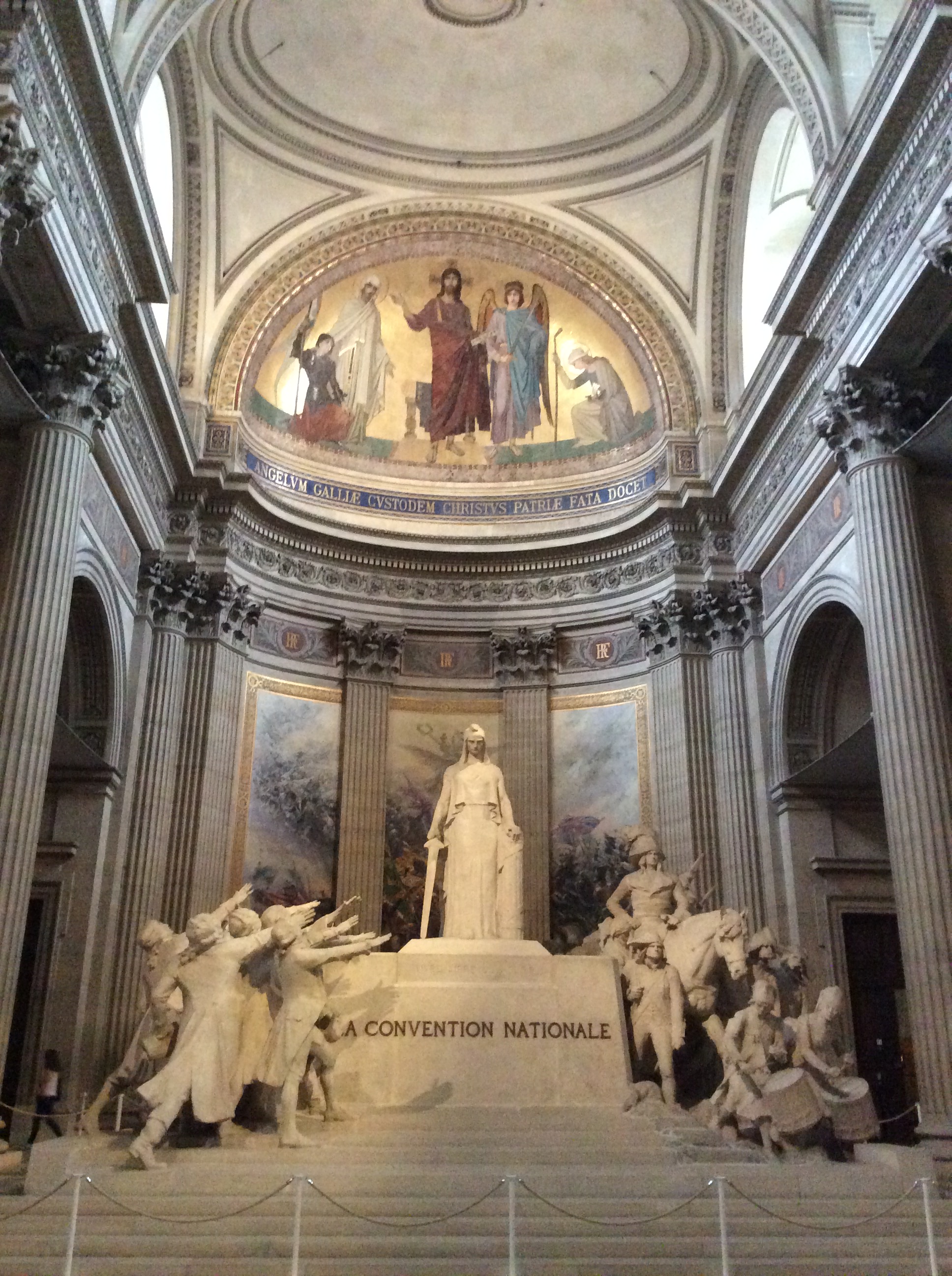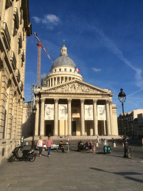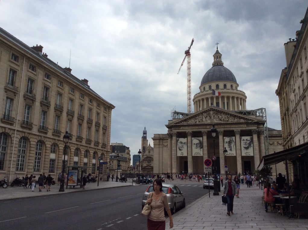 I consider where to go next: I’ll be meeting up with my husband at Gare du Nord tomorrow morning, so I need to get out the house in good time. He’s flying in with his fellow randonneurs and his bike and cycling gear to ride Paris-Brest-Paris, a 1200-kilometer cycling event that’s been put on every four years for over a century. Before the big ride, we’re taking a detour to Berlin to visit family for a few days, then I’ll see him off on his ride and return to Paris. I’ll be returning to the Pantheon then for a real visit, and to continue my adventures following Thomas Paine, Mary Wollstonecraft, and Thomas Jefferson.