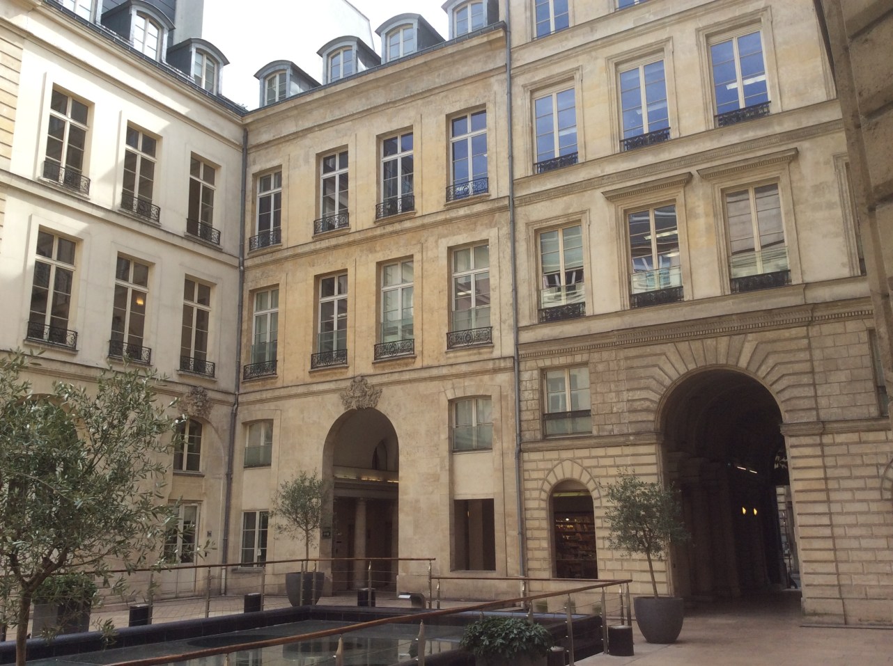 At 101, I find a classy place, fit for an honored foreign dignitary, with a lovely courtyard with a lovely arched entryway, updated with a modern reflecting pool. Again, I’ll return to this street soon for further explorations, which will be easier next time since I’m now getting very familiar with this corner of Paris, and as I find more source material with which to confirm whether the numbers have changed. (See update to the search for the Monroe house on rue de Richelieu.)
