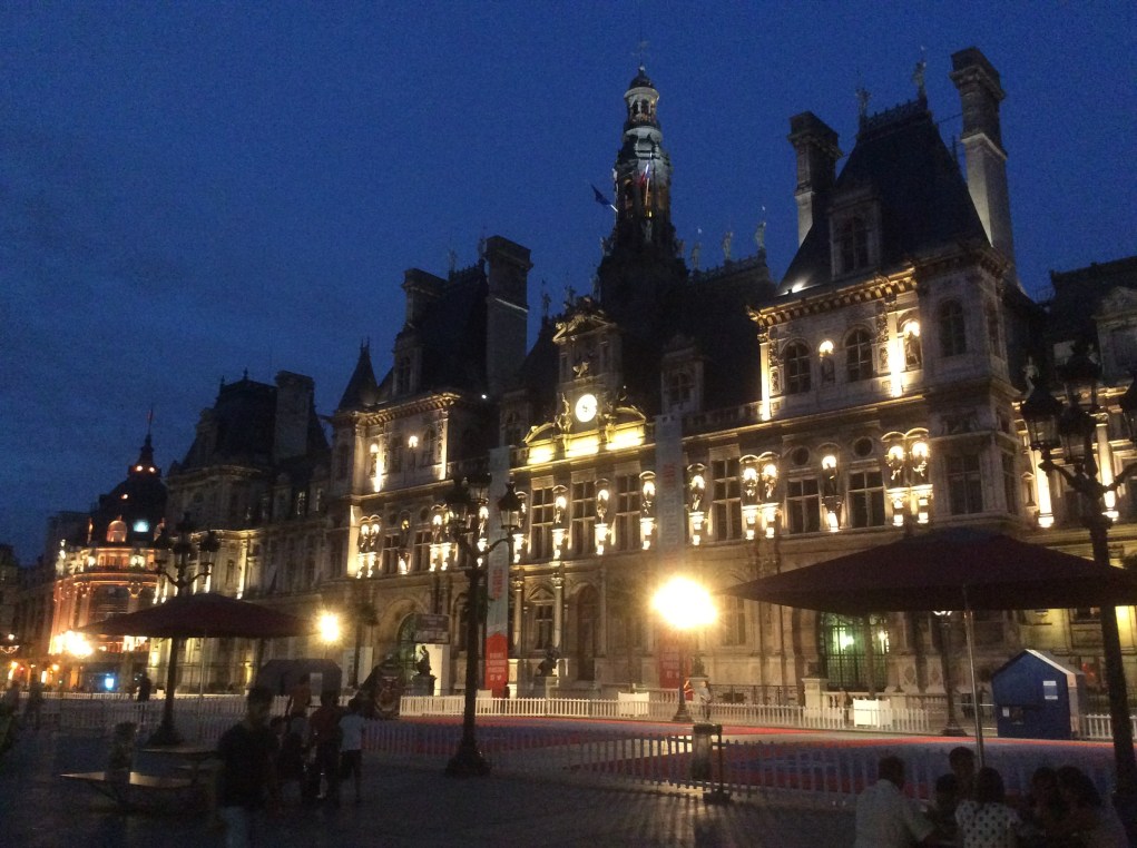 associated with a subject of my trip: the Hôtel de Ville, which has several connections with the life of Thomas Paine. It’s a very grand building, and looks both lovely and impressive all lit up at night, but it’s not the original building of Paine’s time. That one was burned down in another French revolution in 1871, in the same round of anti-monarchical arsonists that claimed the Tuileries palace and nearly claimed the Louvre.