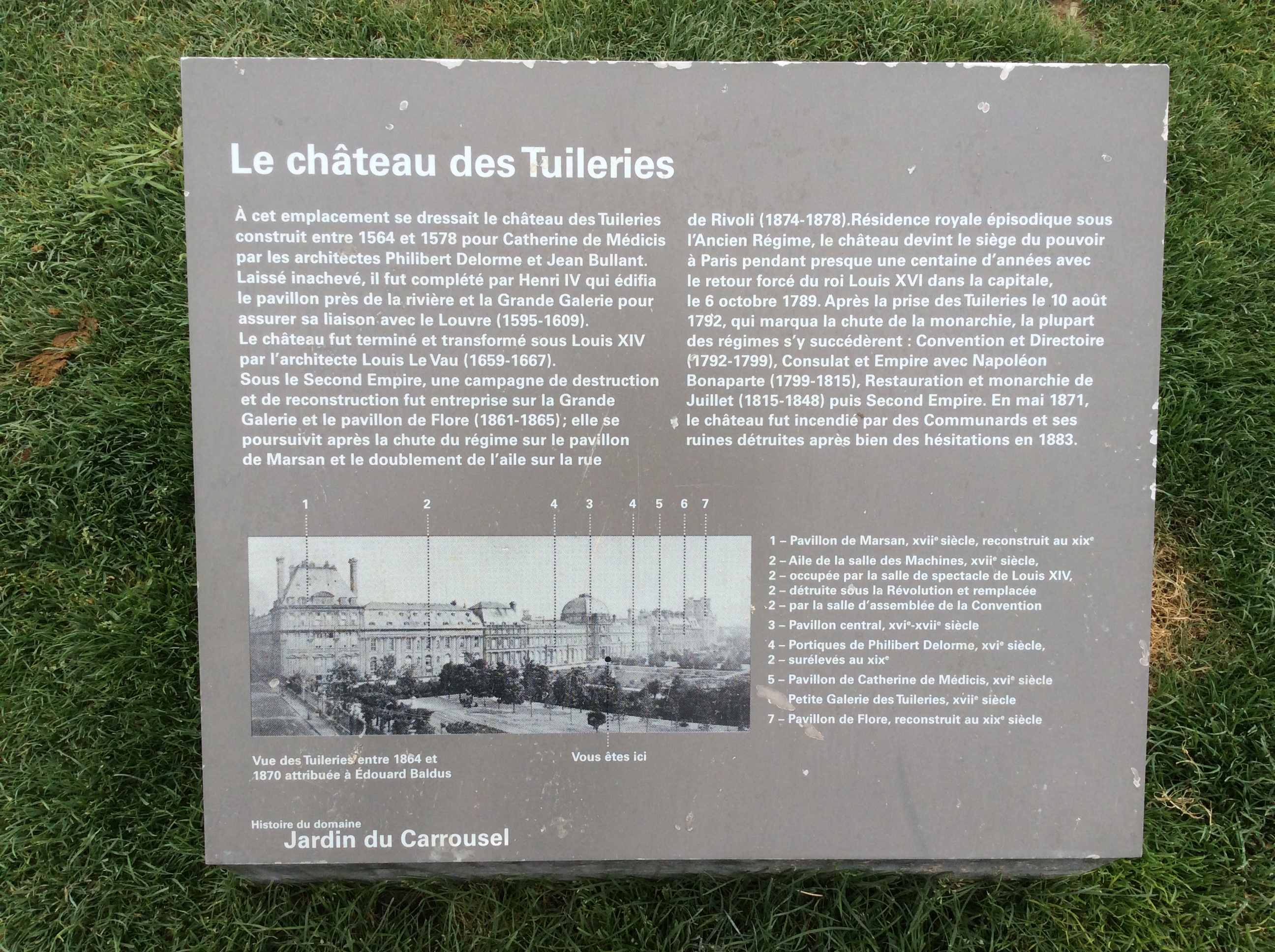 I zigzag my way from rue Montmartre to my first destination of the day: the site of the Tuileries Palace. From May of 1793, the Convention, or the French revolutionary government, met at Palais Tuileries.