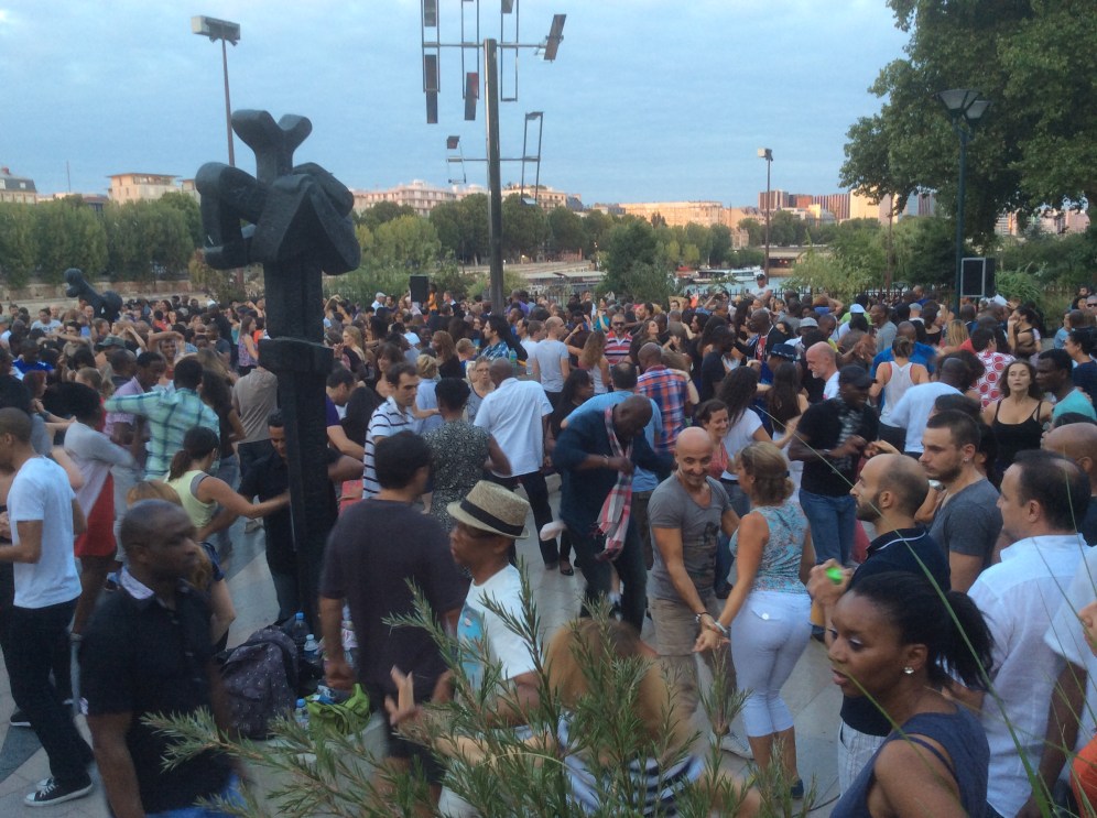 Latin dancers at the Quai St-Bernard along the Seine, Paris, France