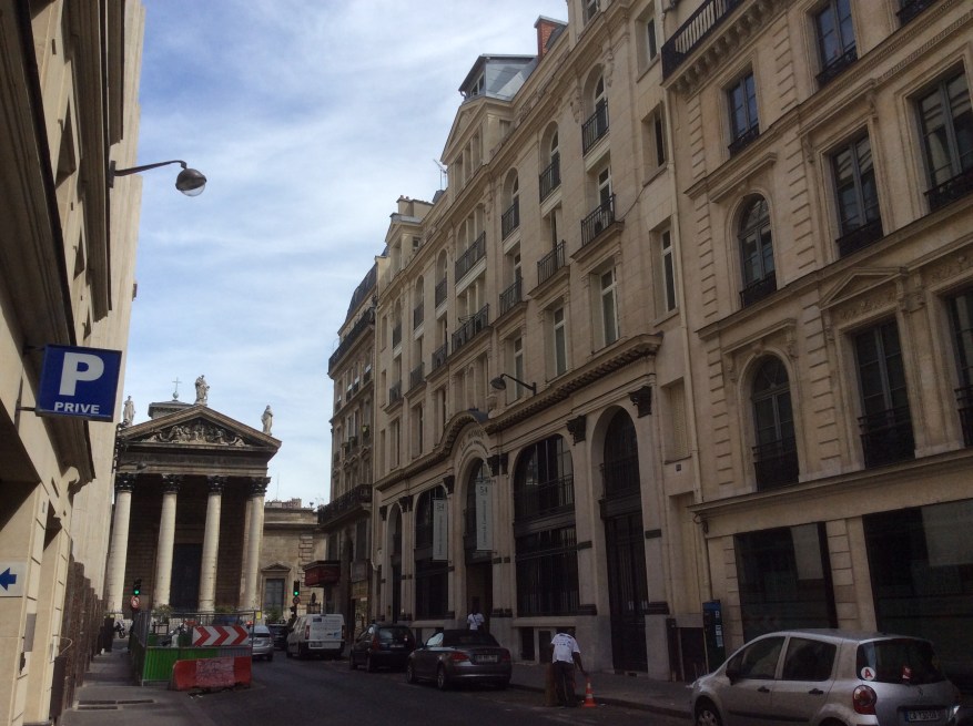 It was very near this place that Thomas Jefferson moved for awhile, eight years earlier in October 1784, on the cul-de-sac (impasse) Taitbout off rue La Fayette near rue St Georges. He signed a long-term lease at Hotel Landron, also called Hotel Taitbout, but only ended up living here for about one year. I explore this area very thoroughly, peeking into every courtyard, driveway, and byway I can find, but a hotel by this name is nowhere to be found so far as I can see. (By the way, ‘hotel’ wasn’t used in the same sense as we use it today: It could refer to a grand house or a large public building.) This area is very near where I’ll be staying next week, so I’ll return if I find more leads, and I’m looking ever more forward to doing so, it’s such a beautiful neighborhood.