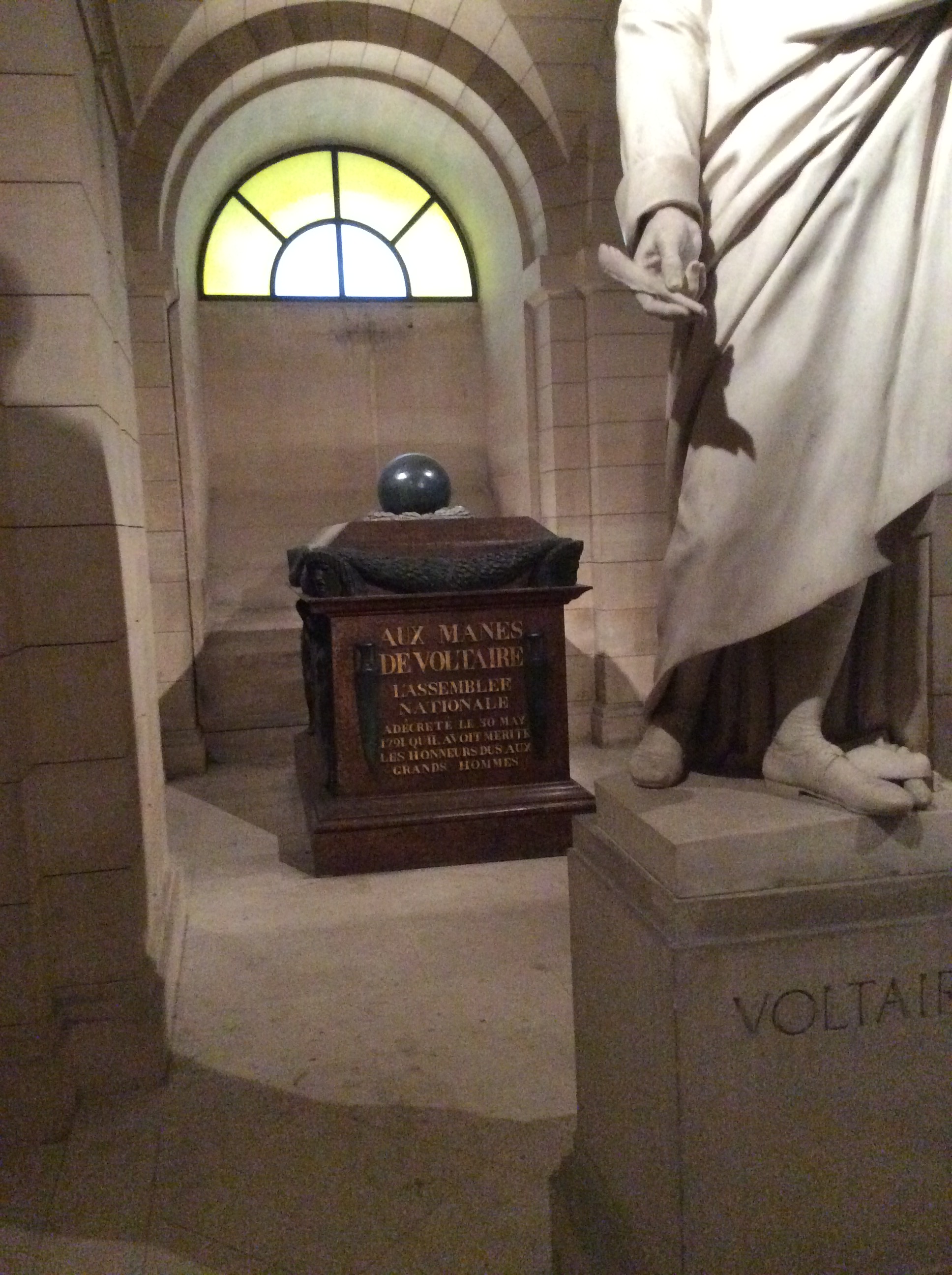 As I’m reminded constantly on my evening stroll, Paris, like our Washington D.C., has not forgotten its nation’s Revolution. Its heroes and events are memorialized in the names of street after boulevard after avenue, in monument after statue after city square: Rue La Fayette, Place de la Bastille, Place de la Republique. So are its philosophes: along with Voltaire and Diderot, there’s Jean Jacque Rousseau, Montesquieu… even our own Thomas Jefferson is an honorary member of this elite company: his larger-than-life bronze sculpture adorns the Left Bank of the Seine.