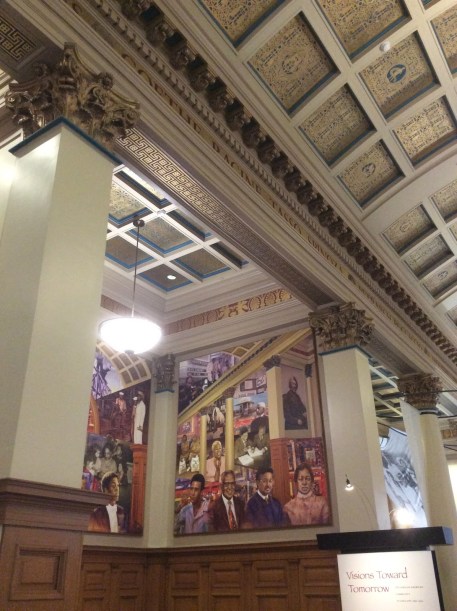 Crowning the main stairway which leads to this upper gallery, there’s a huge collage of great figures in African American history. It just so happens that the image of Douglass is under the name of Spinoza, among the list of names of great thinkers of the past which embellishes the frieze. Cool. Baruch Spinoza is next on my list of great thinkers to follow, but that’s a story for another time. I’d bet they’d have the most fascinating conversations, though, if they could speak the same language. Though they were very different in their histories, their particular beliefs, and their personalities, yet they were both lovers of reason, and they both lived authentically, true to their beliefs, models of intellectual integrity as they refused to obey the unjust rules of the societies they lived in.