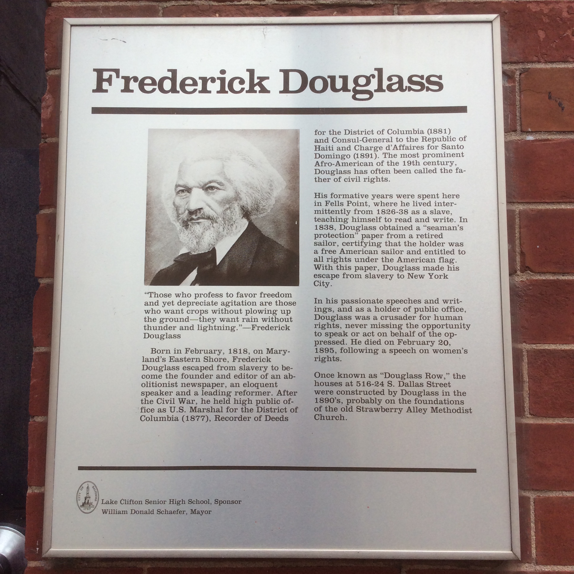 Historical Plaque at Douglass Place, Fell’s Pt Baltimore, photo 2016 by Amy Cools Published March 23, 2016 at 1936 × 1936 in Frederick Douglass Baltimore Sites ← Previous Next →