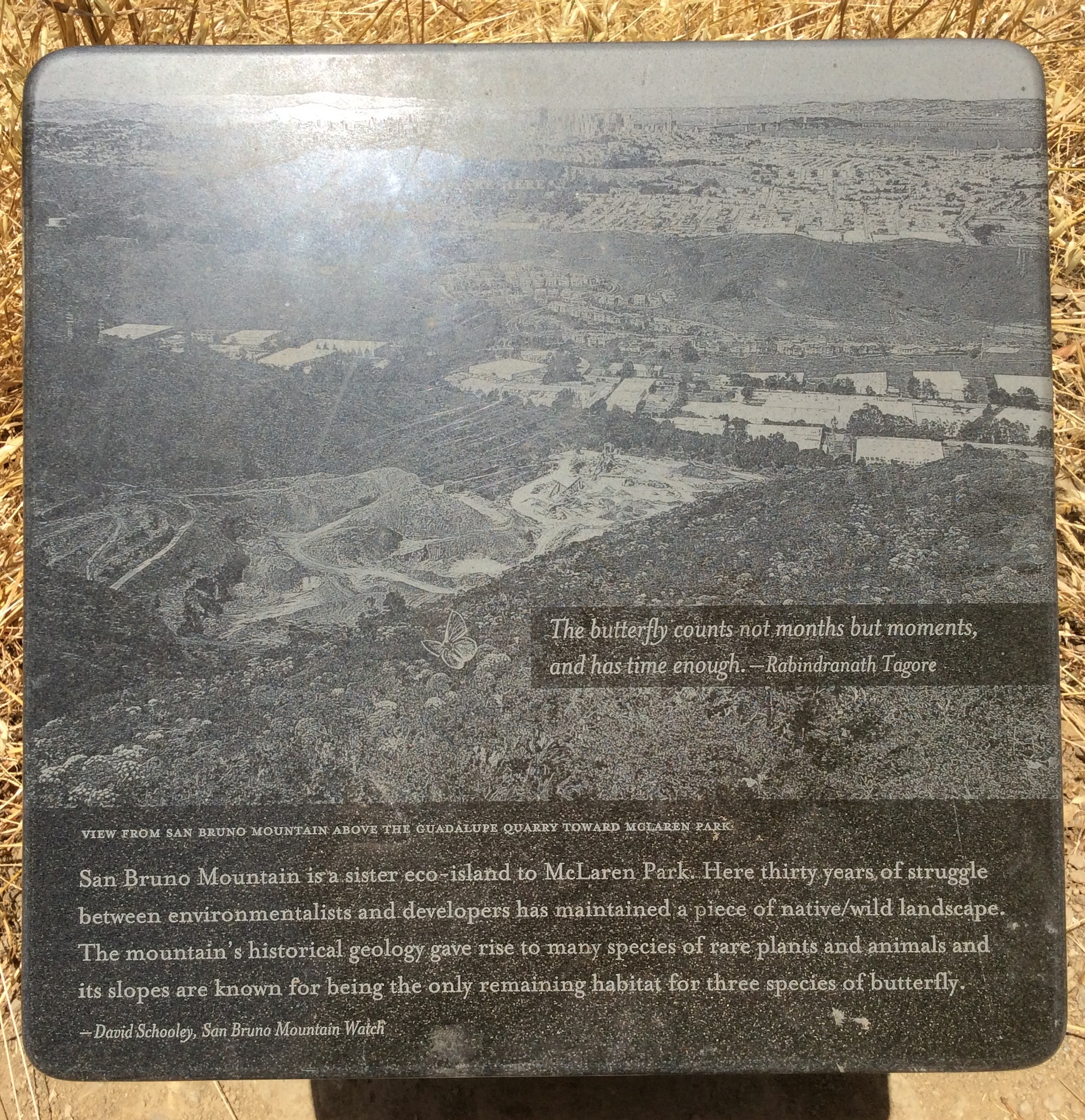 Philosopher’s Way entry trail, John McLaren Park, San Francisco. The plaque contains the trail map and text seen below