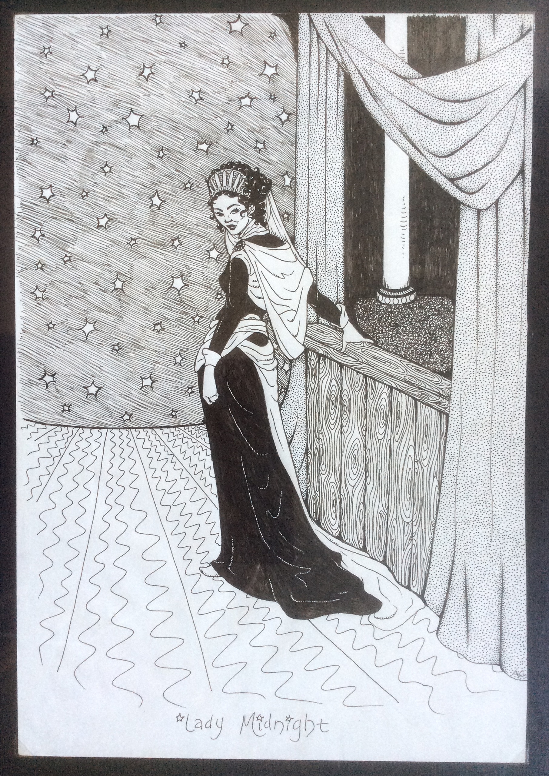 My illustration of Leonard Cohen’s Lady Midnight, from about 1997 – 1998 according to my best guess; I was about 20 or 21