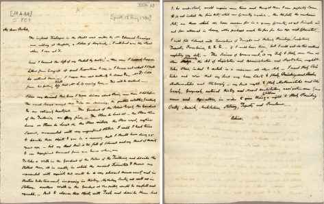 Letter from John Adams to Abigail Adams, posted from Paris on May 12, 1780. From the Massachusetts Historical Society collections