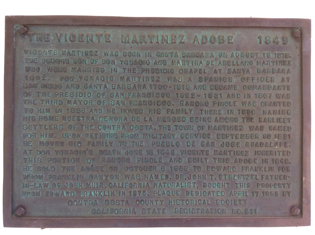 Vicente Martinez Adobe plaque at the John Muir National Historic Site, Martinez, CA