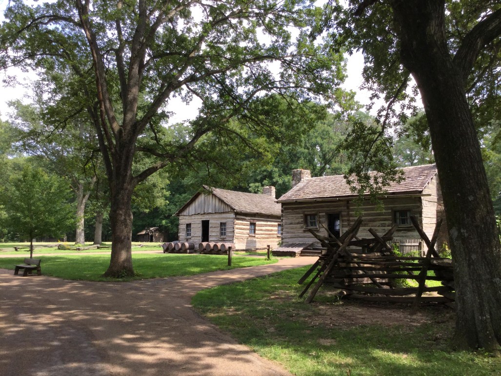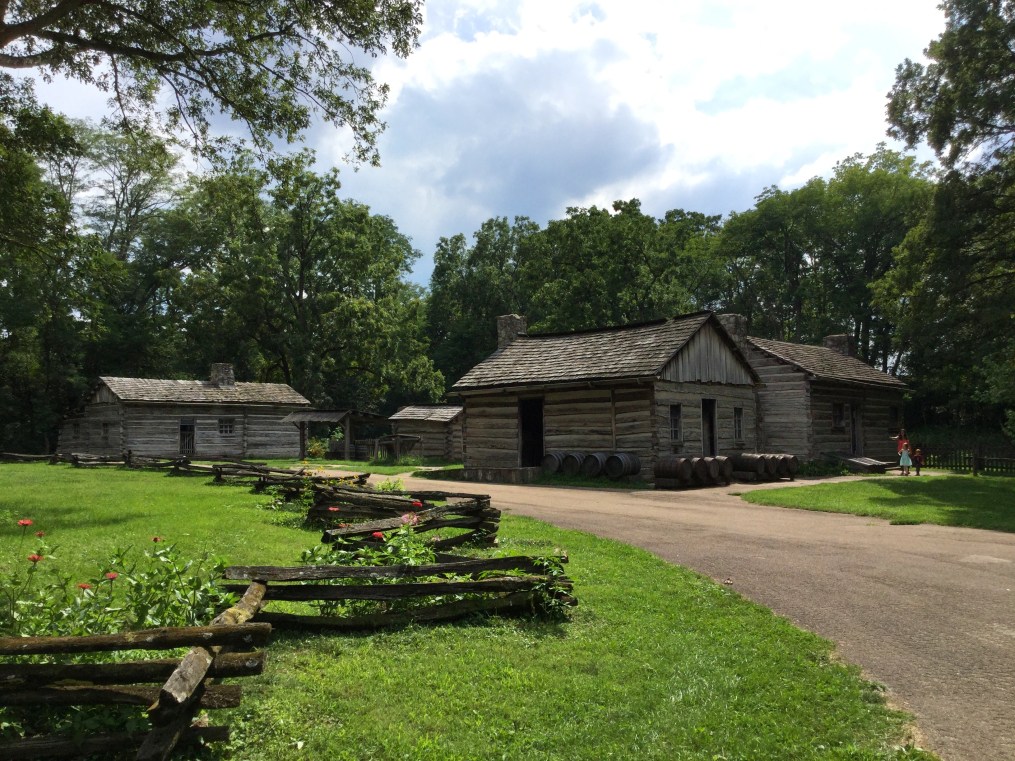 Henry Onstot’s cabin, right, and cooper shop, left, New Salem, Illinois. The cooper shop is the only original building from New Salem; the rest have been reconstructed
