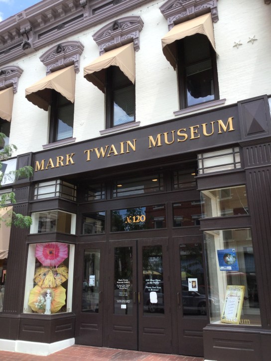 Right now, I’m at the Mark Twain Memorial Lighthouse, a little white wood structure built to honor the great author in 1935. It’s reached by 244 steps, which makes me happy. I’ve been missing my California hills and this climb is a break from the nearly unrelenting flatness of the Great Plains and the Midwest. My legs welcome the gentle, pleasant burn. I’m drenched with sweat before the exercise even begins; in fact, I never really dried off after my shower. It’s very humid and already very warm at 11 am.