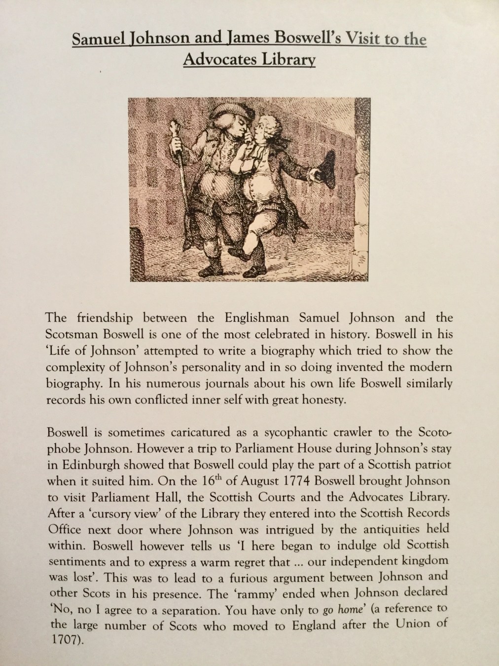 Samuel Johnson and James Boswell‘s Visit to the Advocates Library, placard near the entrance from Parliament Hall, Edinburgh for Doors Open Days