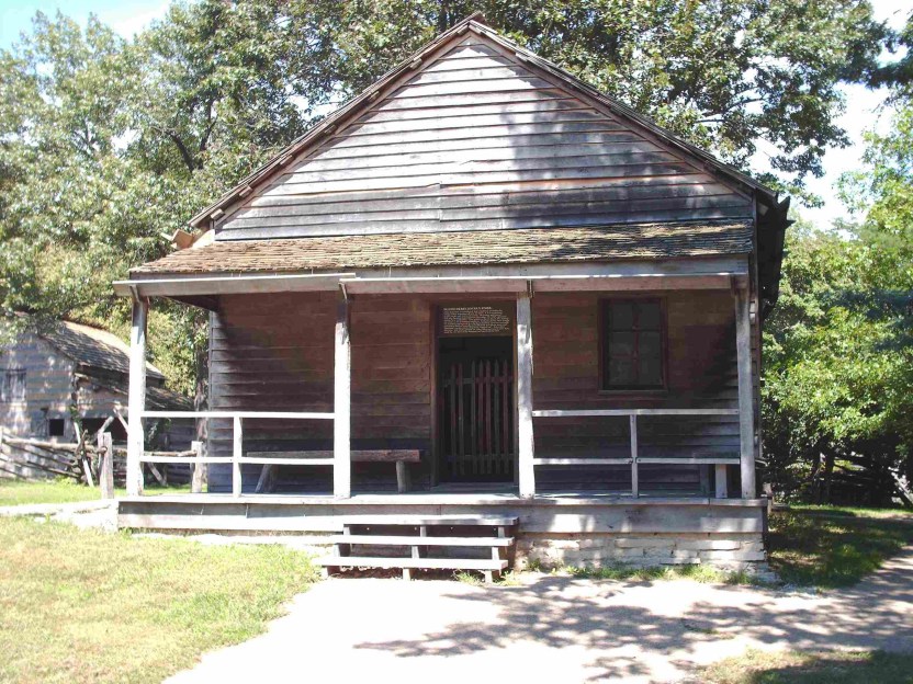 Mentor Graham’s schoolhouse, exterior view. It was originally located about a half mile southwest of the site of this reproduction.