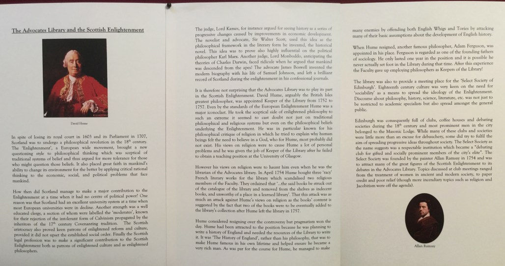 The Advocates Library and the Scottish Enlightenment, placard at Parliament Hall, Edinburgh for Doors Open Days