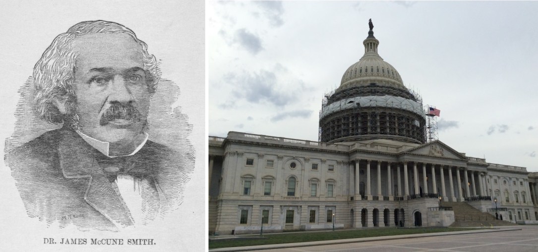 Left: Schomburg Center for Research in Black Culture, Manuscripts Archives & Rare Books Division., ‘Dr. James McCune Smith.’ NYPL Digital Collection, 1891. Right: US Capitol Building under repair, Washington, D.C., 2016 Amy Cools