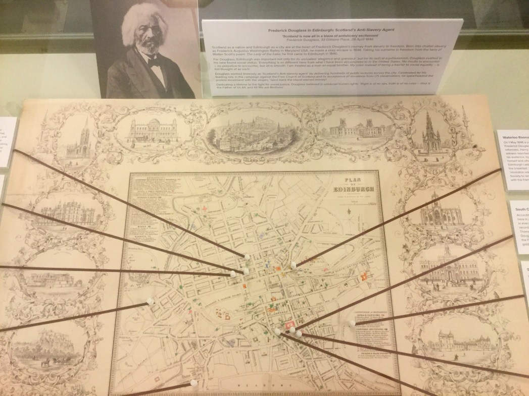 Frederick Douglass in Edinburgh map, Strike for Freedom exhibit, National Library of Scotland, 2018