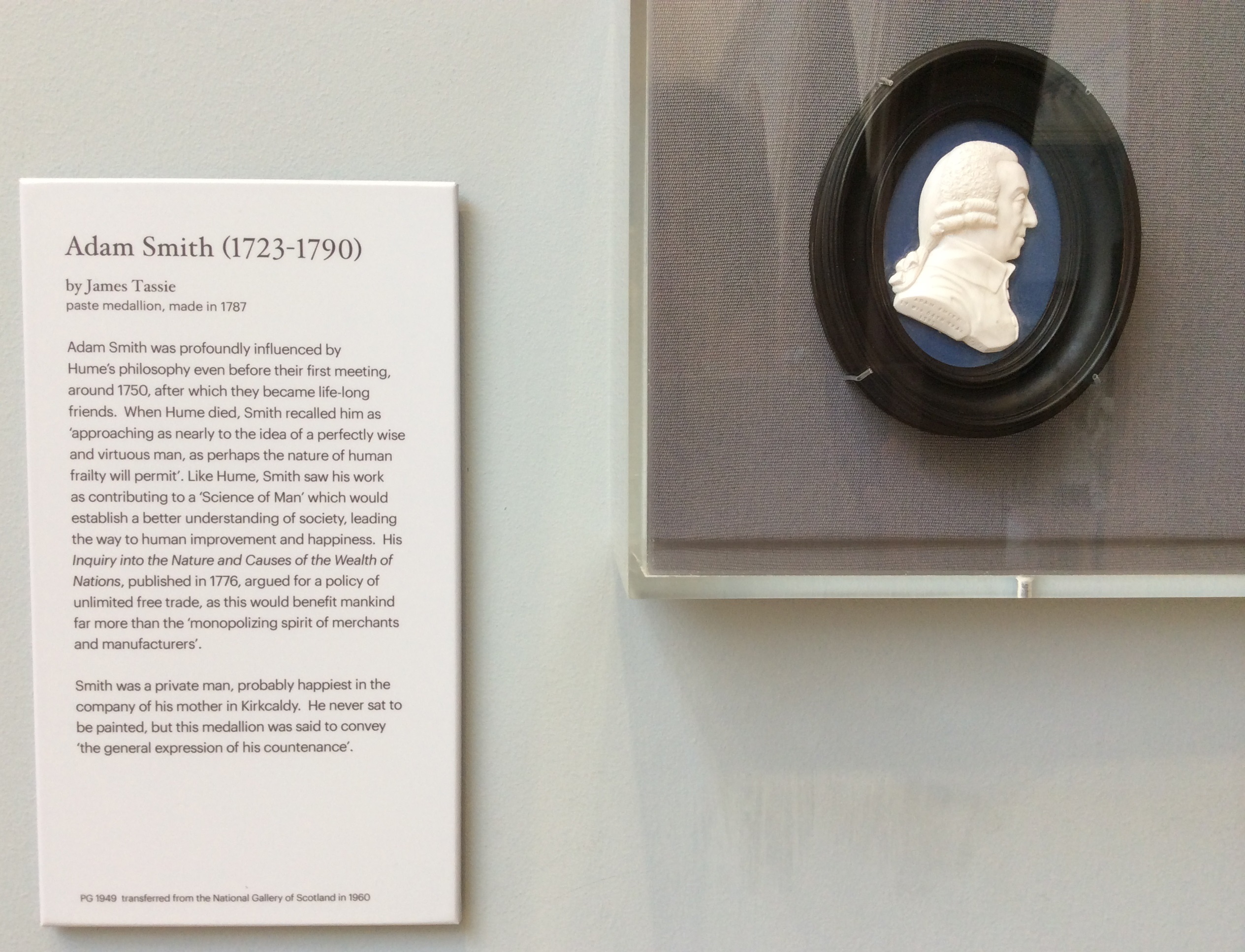 Portrait medallion of Adam Smith by James Tassie at the National Portrait Gallery in Edinburgh, Scotland.