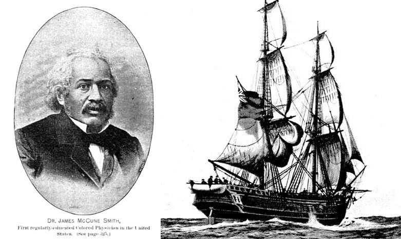 L, James McCune Smith, via Wikimedia Commons; R, The Caledonia, via Upper Canada History blog, both public domain