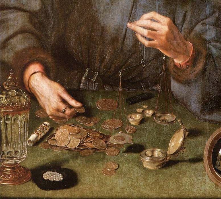 The Moneylender and his Wife by Quinten Massijs (detail), public domain via Wikimedia Commons