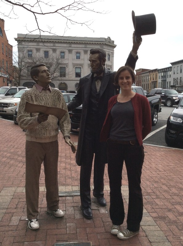Me with Abraham Lincoln’s sculpture near David Wills house where he stayed in Gettysburg, PA, the night before giving his great Address. I visited Gettysburg during my 2016 journey following Frederick Douglass