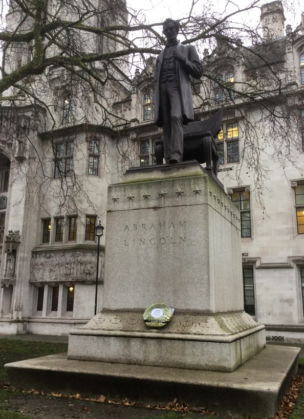 Abraham Lincoln statue near Westminster Abbey, London, on a winter day, photo 2018 by Amy Cools