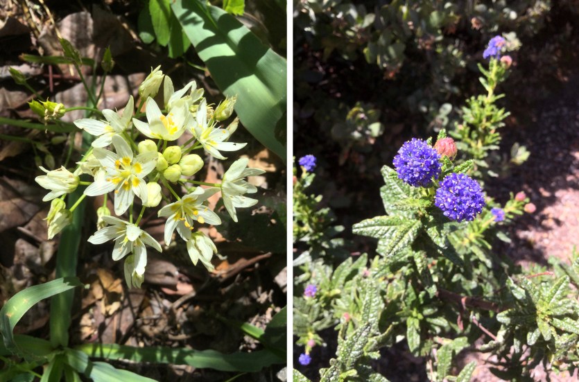 Left: Fremont Star Lily. Right: California Mountain Lilac. Fremont Peak State Park, CA