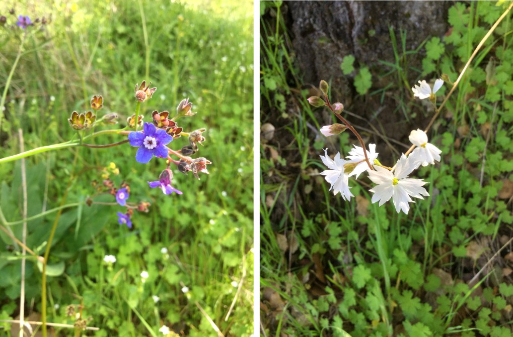 Left: Hound’s Tongue. Right: Woodland Star. Fremont Peak State Park, CA