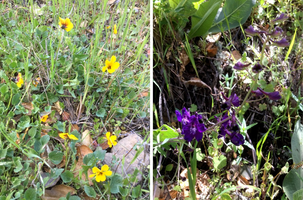 Left: Wild Pansy. Right: Royal Larkspur. Fremont Peak State Park, CA, 2017 Amy Cools