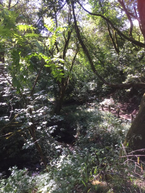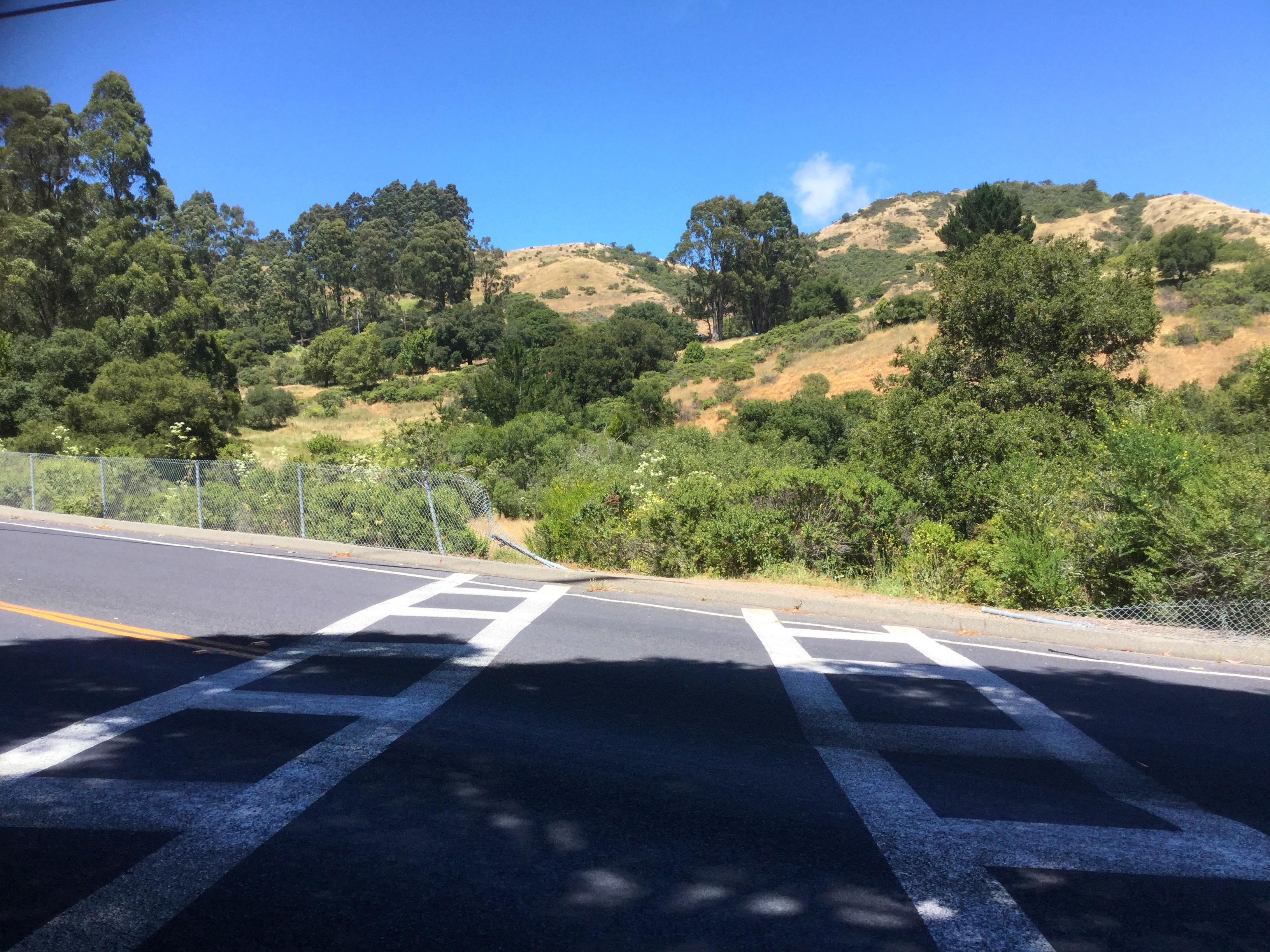 Looking back at Macdonald Trail, across Grass Valley Creek, from Big Bear Staging Area, where I cross Redwood Road to enter Redwood Regional Park