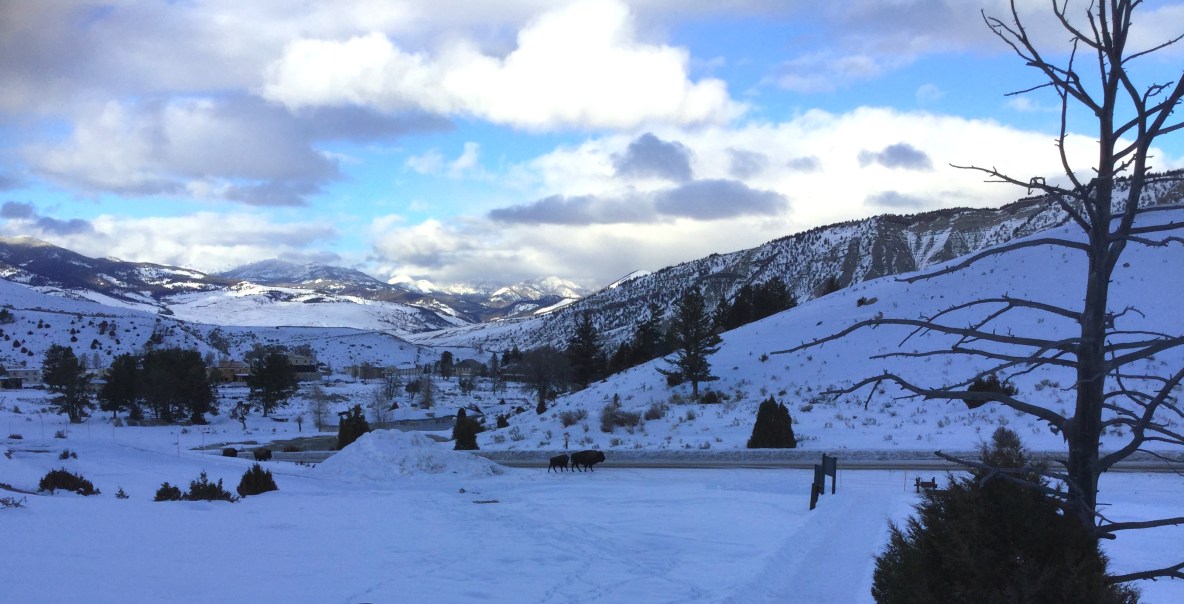 Bison at Yellowstone National Park. During my visit, despite the cold and deep snow, I saw plenty of wildlife, including elk, many species of birds, deer, and a red fox