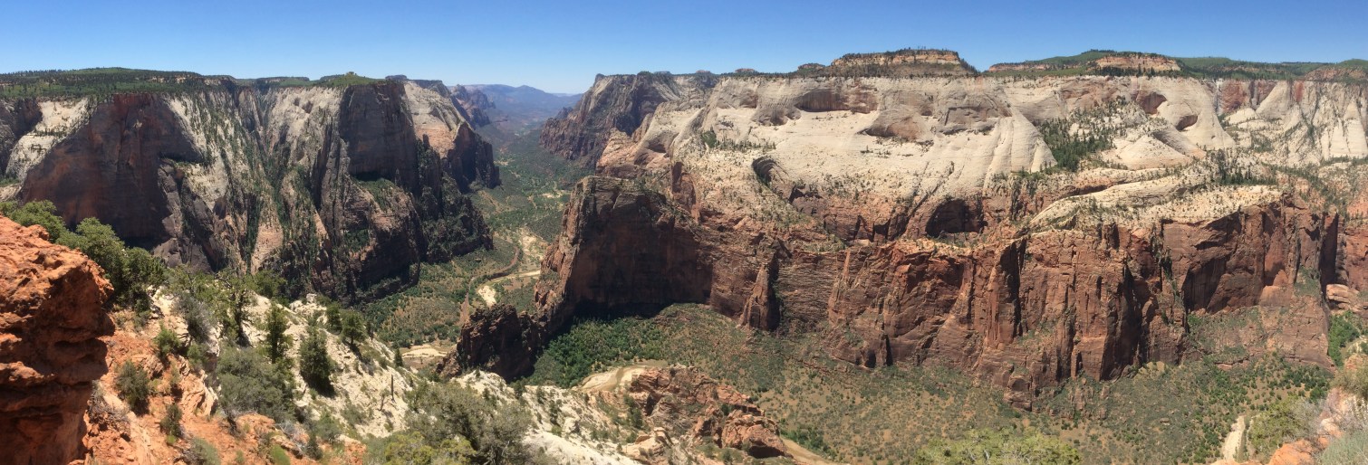 1 – Zion National Park, Utah. Panoramic view from Observation Point which overlooks the Virgin River canyon from 6,507 feet, June 2016
