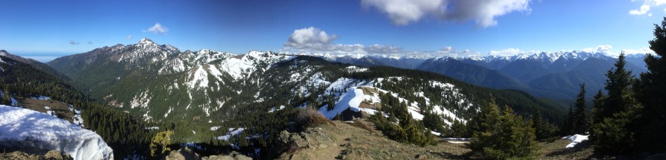Panoramic view of Olympic National Park from Hurricane Hill. You can see the ocean near Point Angeles in the distance to the left