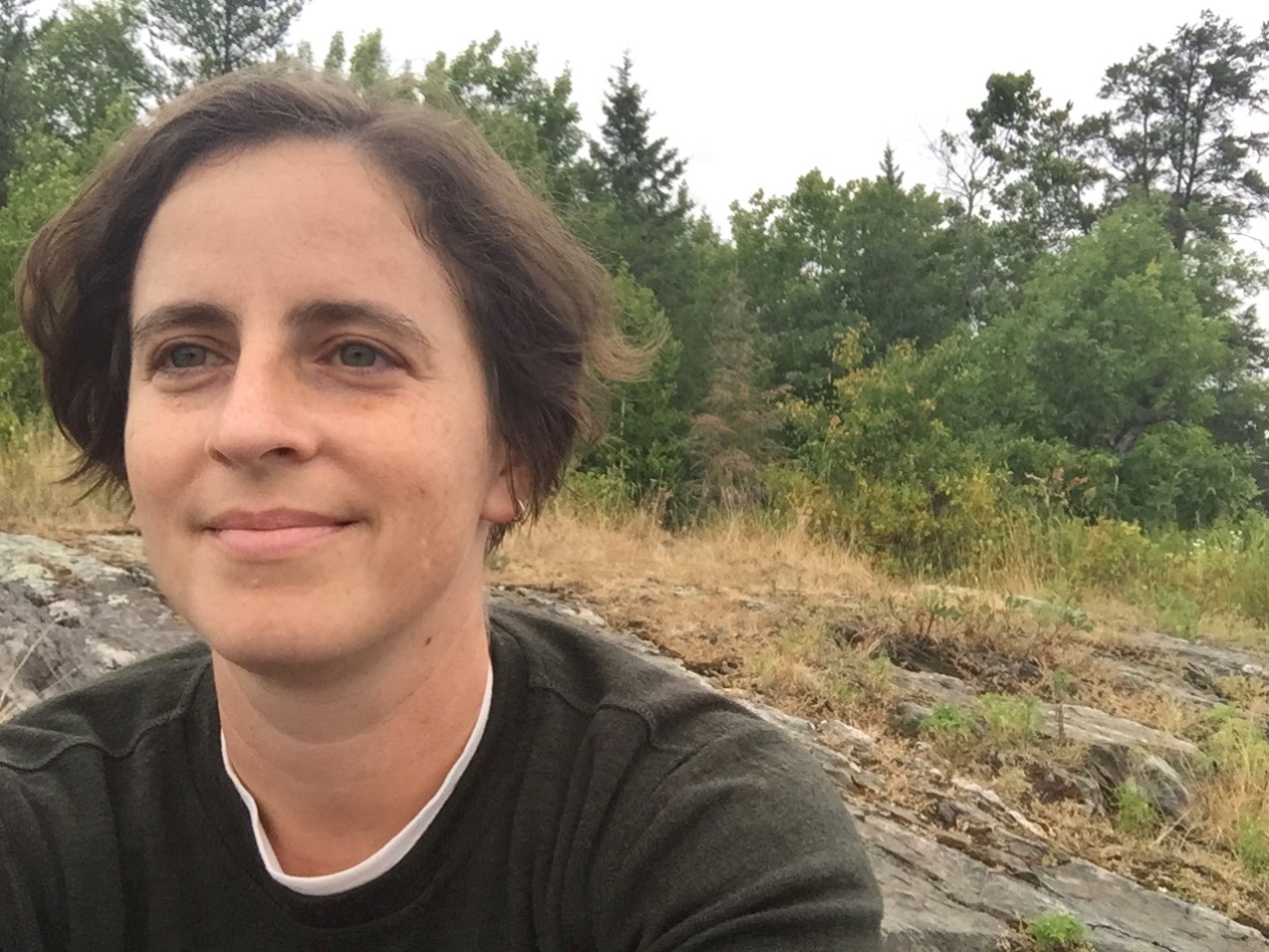 On some very ancient rocks at Voyageurs National Park. The exposed rocks at this park date as far back as 2.8 billion years, over half the age of the Earth itself.  Such ancient rocks are exposed here because the park contains the edge of the Canadian Shield, an ancient volcanic bedrock that’s been exposed in places by glaciers that passed through here then disappeared around 11,000 years ago. The rocks I visited are not that old, but they are very old indeed. Grace, a geology enthusiast and employee of the National Park Service, was excited at my inquiry about the geology of the park (her fellow National Park Service employee watched our interaction with an ‘oh no, here we go again! look), and she took me on a tour of some nearby ancient formations. The one I’m sitting on is one of those.
