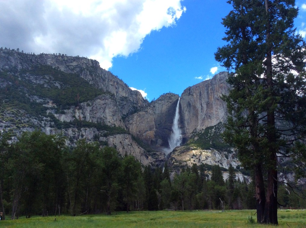 Yosemite Falls from Yosemite Valley, still gushing in June. When I return later that year, it will look very different