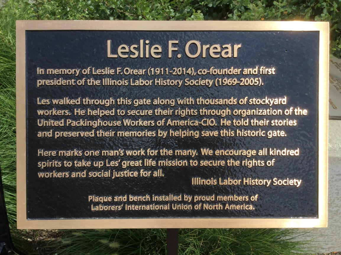 Leslie Orear plaque at the Union Stockyard Gate, Chicago, Illinois