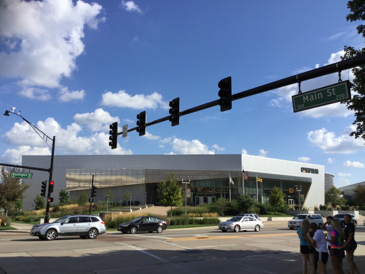 Caterpillar welcome center, at the southeast corner of Main and Washington, on the site of the Ingersoll law office from 1873-1875
