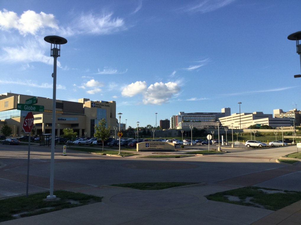 My last stop of the day is half a mile north on my way back to my hotel room, so I pick up the car from where it’s parked near the Peoria Public Library, and drive uphill towards the big OSF Saint Francis Medical Center. When I arrive, I find a brand new parking lot and medical building at the northeast corner of Hamilton Blvd and Globe St, the UnityPoint Health Methodist Ambulatory Surgery building. It’s so new that Google Maps still shows nothing at the site but freshly leveled dirt and huge pipes ready to go into the ground.