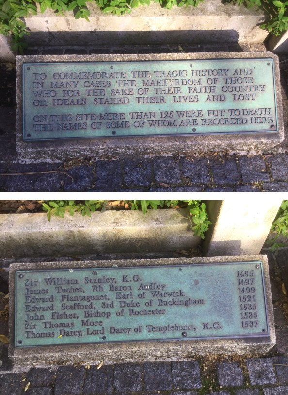 Memorial plaques at Tower Hill Scaffold Site near the Tower of London