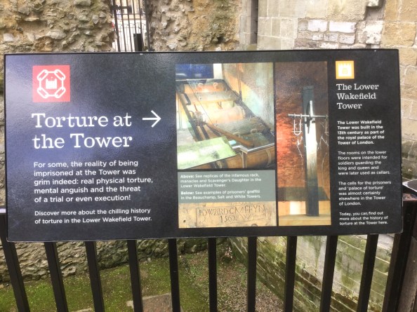 Sign for the torture exhibit at the Lower Wakefield Tower, Tower of London