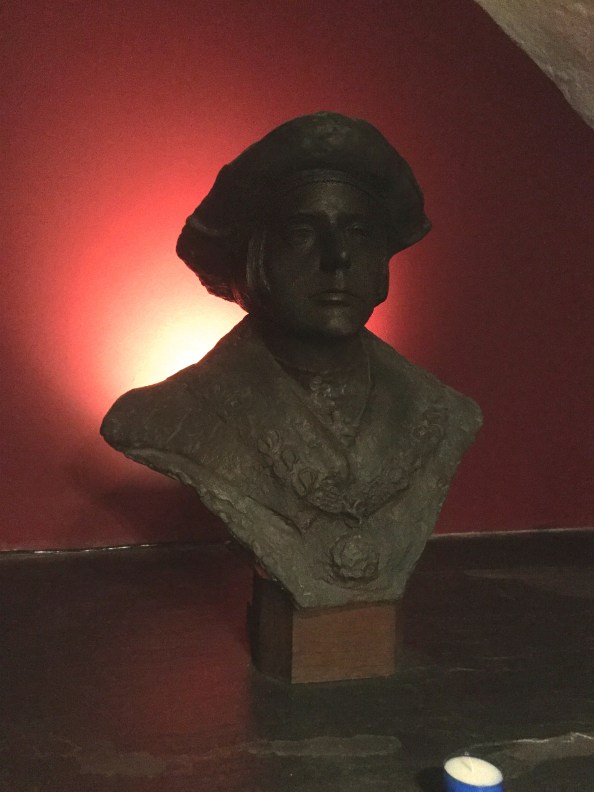 Before I get into the details of the day’s explorations, let me offer a few more details about Thomas More just in case this is your introduction to him, or, just in case it’s been awhile since you read or heard anything about him and your memory is rusty on the subject. Born on February 6th, 1478, he was a lawyer, scholar, writer, statesman, and Lord Chancellor of England from 1529 until he asked King Henry VIII to release him from the post in 1532 when More found himself no longer able to support the King in his power struggle with the Pope. Henry VIII’s first wife, Catherine of Aragon, was the widow of his older brother prior to Henry’s marriage to her. When the marriage failed to produce any living male heirs, Henry VIII sought to have his marriage to her annulled, freeing him to marry his paramour Anne Boleyn. Trouble was, Henry VIII had already sought and won a special dispensation to marry Catherine in the first place from the previous Pope; the new Pope was a virtual prisoner of the Holy Roman Emperor Charles V; and Catherine was the Emperor’s aunt. So, as you can imagine, this whole annulment business was a sticky, tangled religious and political mess. Henry solved the problem in a typically aggressive and self-aggrandizing way: he tore the Church of England away from the Catholic Church and placed himself at the head of it, ruining careers, taking away titles, confiscating lands and property, and chopping off heads along the way.