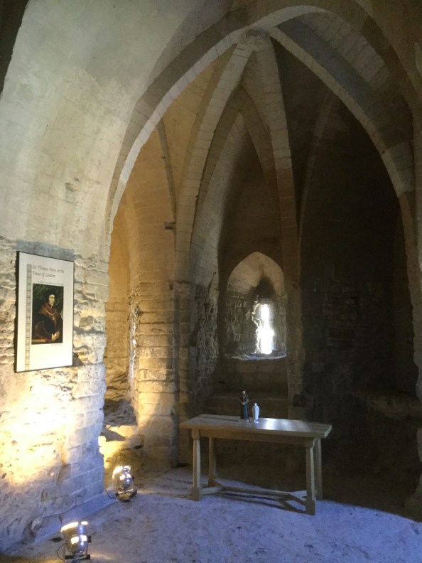 Overall, given what I’ve read and heard, I think, like Ackroyd does, that More’s place of imprisonment changed at least once. In one of his letters written in 1534 from his prison cell to his eldest daughter and confidante Margaret Roper, who he called ‘Meg,’ More reports that he was returned to ‘close keeping’ and ‘shut up again.’ Does this mean he was imprisoned more securely, perhaps in a different room, or just not allowed to leave his cell? Ackroyd interprets More’s comments to mean he was held in solitary confinement, but perhaps they could also refer to his being moved to a more isolated, stronger cell away from others where escape or rescue was far less likely.