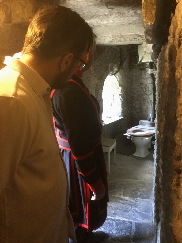 Early on in our Tower visit, I spotted a sign near the base of the Bell Tower, just across and to the left of the place where visitors enter the Tower, which identified the Bell Tower as More’s place of imprisonment. Upon further inquiry, I discovered that it’s not open to the public. It had been for a short while many years back, but wear and tear caused by visitors there and in other especially historically significant places within the Tower caused them to be closed off again. The damage was minor but happened more quickly than expected, even given the very large number of people that pass through every year: almost three million in 2017 alone! I persisted in my inquiries, as my historically nosy self is wont to do, and discovered that historians can and do seek and gain permission to visit. And so I did!