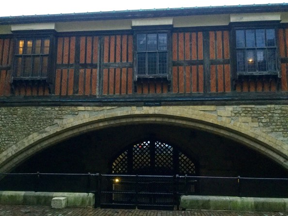 Traitors’ Gate under St Thomas’ Tower, from inside the walls of the Tower of London. As you can see, the sky has a grayish cast to it: I took this photo last time I was here at the Tower in January